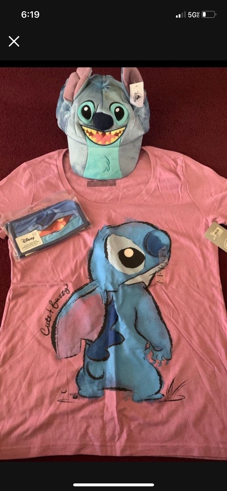 Disney Stitch Women’s T-shirt( available in size XLarge )NWT and Disney Parks Stitch face mask and Stitch Plush Baseball Hat Blue adult size serious buyer only Low offers will be ignored Pick up only Pick up location in the city of Pico Rivera