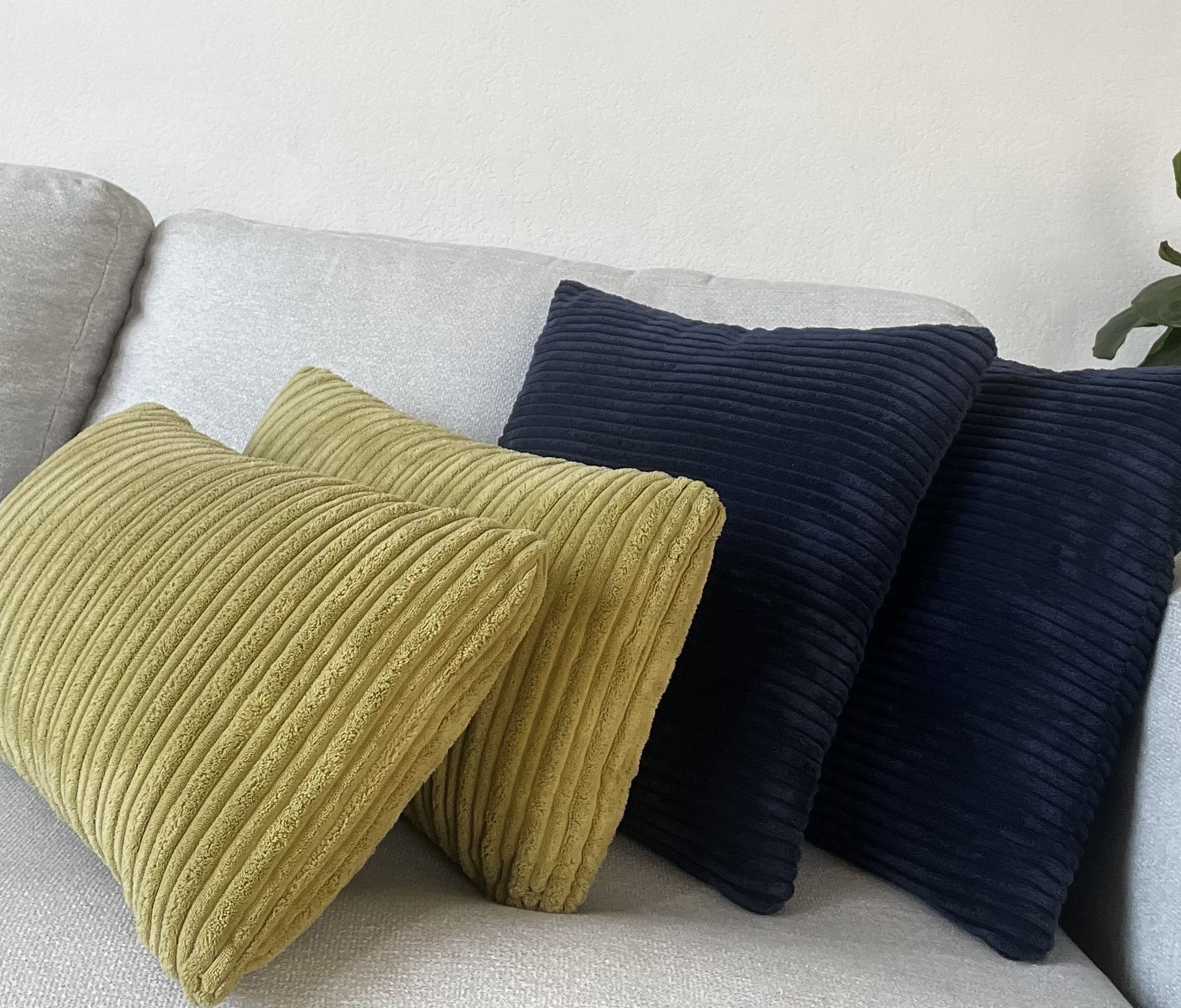 Decorative and comfortable couch pillows. Large 17” x 17” (2) Small 19” x 10” (2)