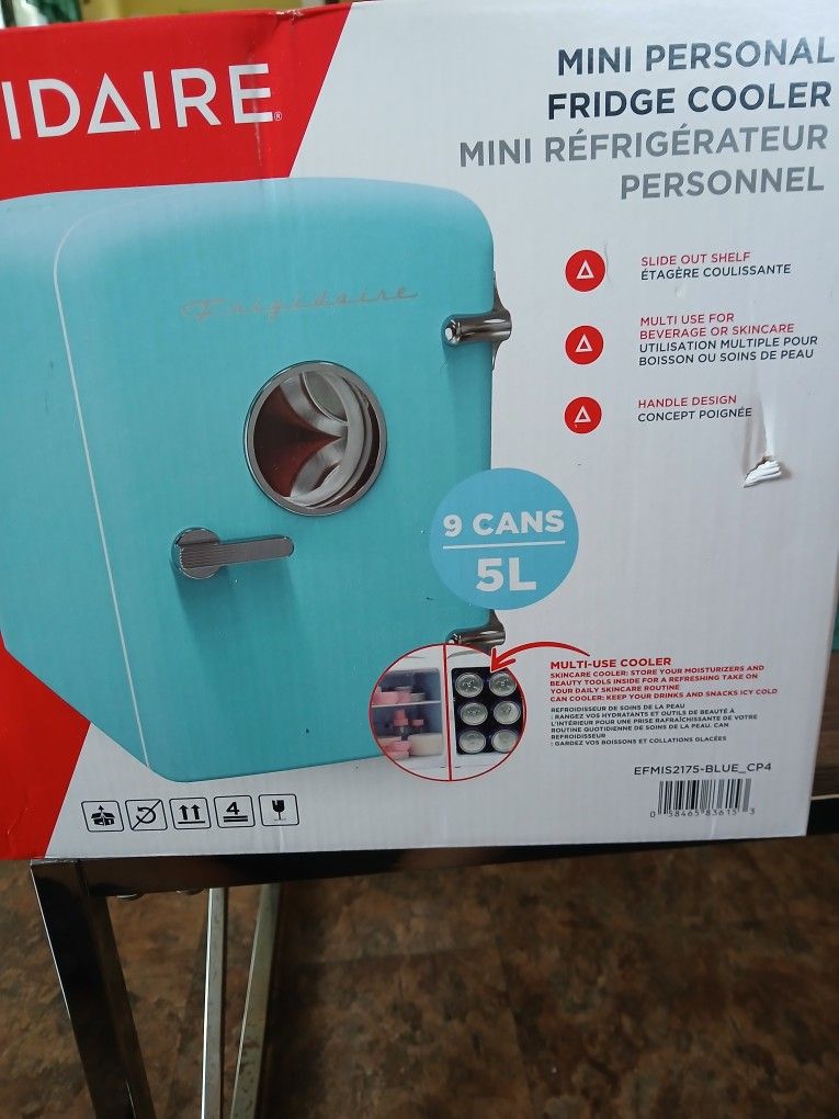 5 L mini personal fridge cooler great for traveling compact with carrying handle. Brand New inbox have one in red and one blue. $35 each great Christmas gift