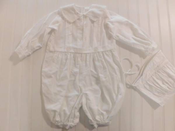 Vtg Little Things Mean a Lot Boy 24 Month Christening Romper & Bonnet