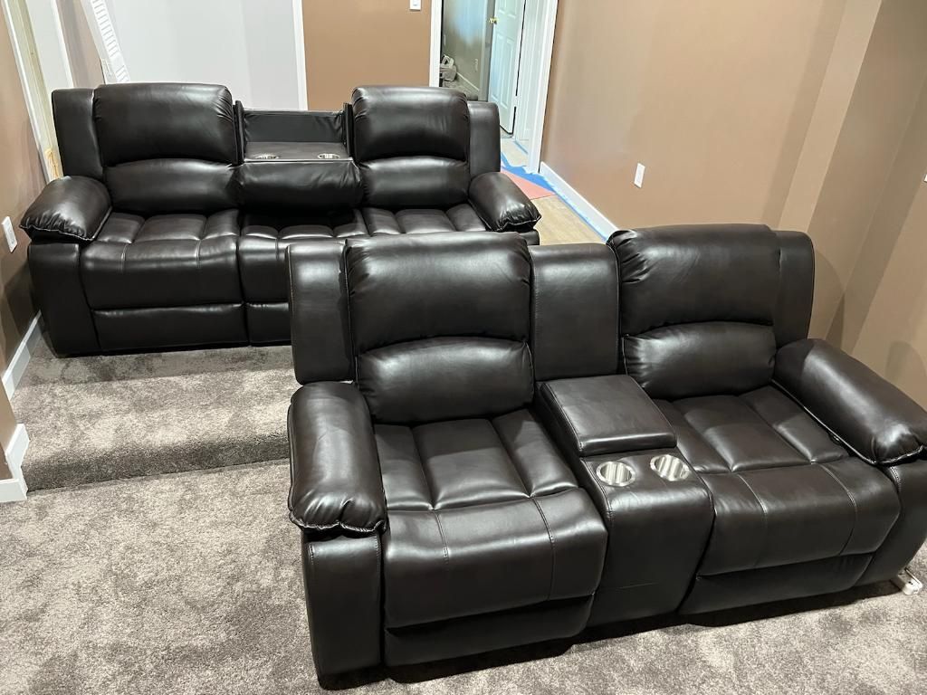 New Reclining Couch W Fold Down Console / Love Seat . Espresso Leather . Free Delivery !