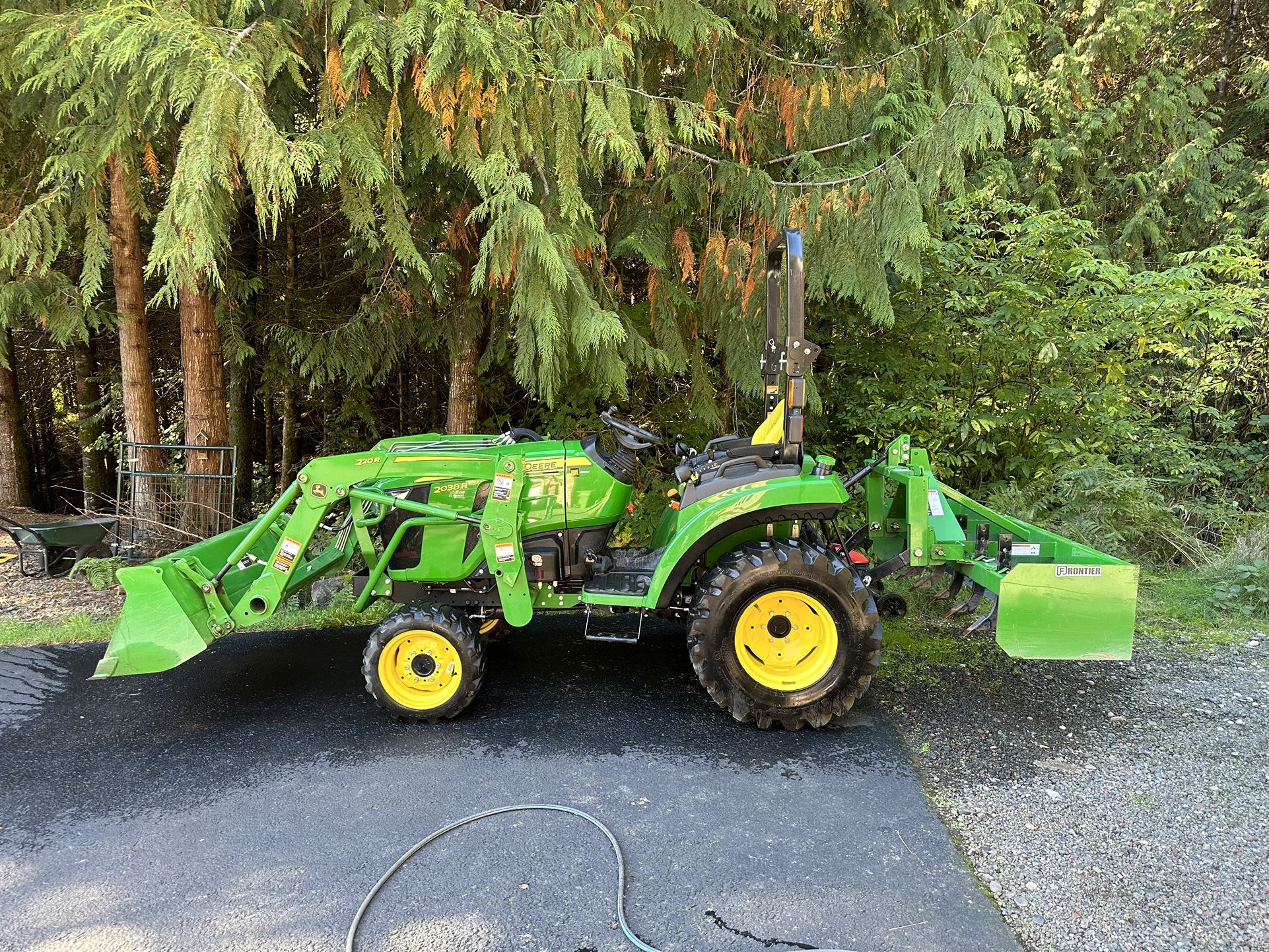 Frontier of the following implements for tractor: 1. Pallet Forks 2. Rototiller 3. 57” bucket 4. 6ft Rake 5. Brush Hog 6. 9” Post Hole Digger (Never been used) 7. 6ft Box Blade 8. Bucket Tooth Bar 9. Wheel base extenders Tractor has 75 hours on it. 100 hour service just completed, tires are filled with plum juice for weight. Tractor has iMatch attachment for easy loading and unloading of implements. Still under warranty until 2024 bump to bump. Powertrain warranty until 2028 Serious inquiries only.