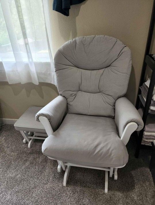 EUC barely used Gray and white gliding rocking chair. It mostly held clothes....lol. upgrading to a "big girl" bedroom. Our loss is your gain $125 OBO