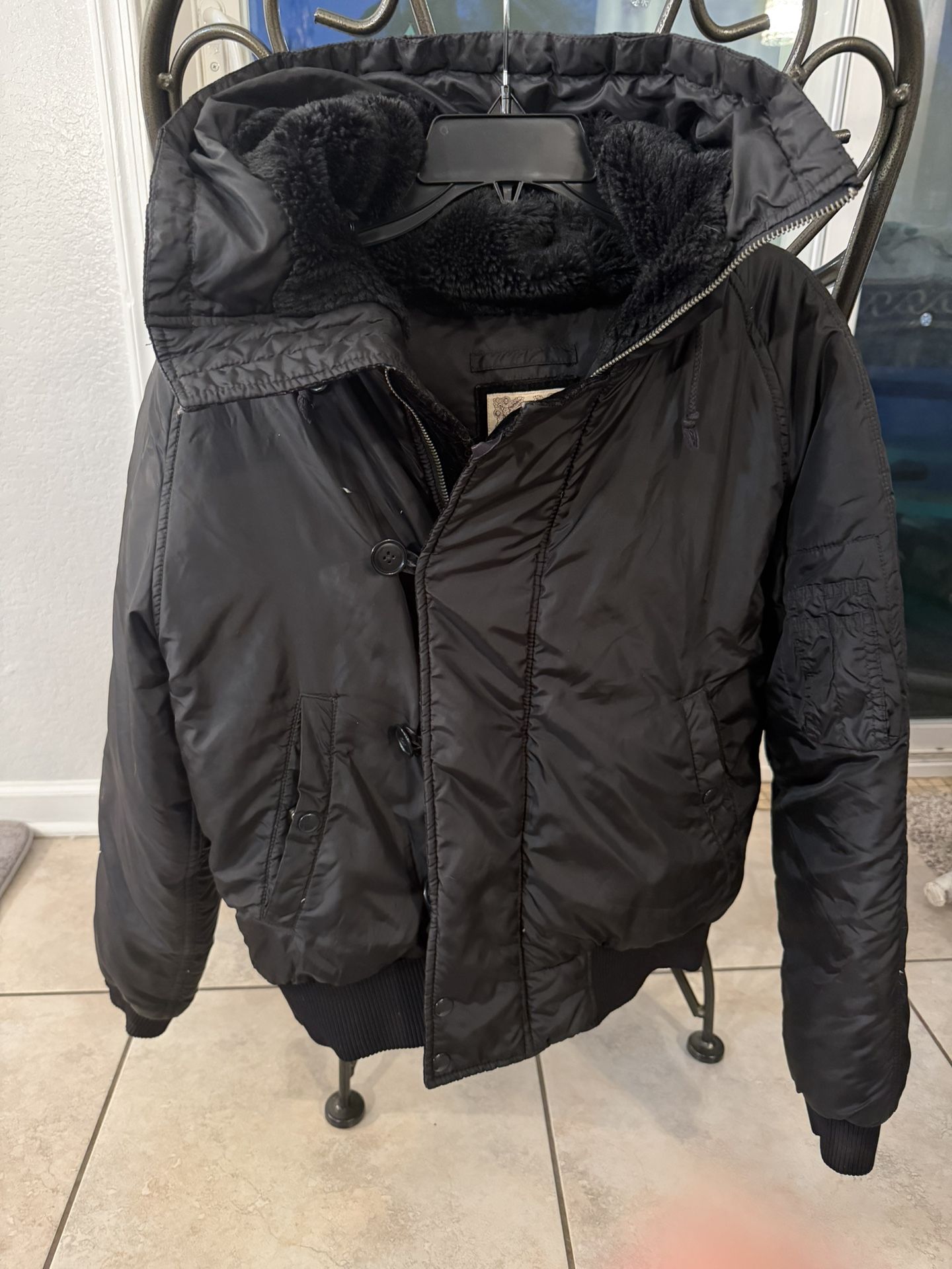 Women black winter coat. Size Large, brand Ralph Lauren- Polo Jean, pockets in front, zipper and button front closure. $10 Price