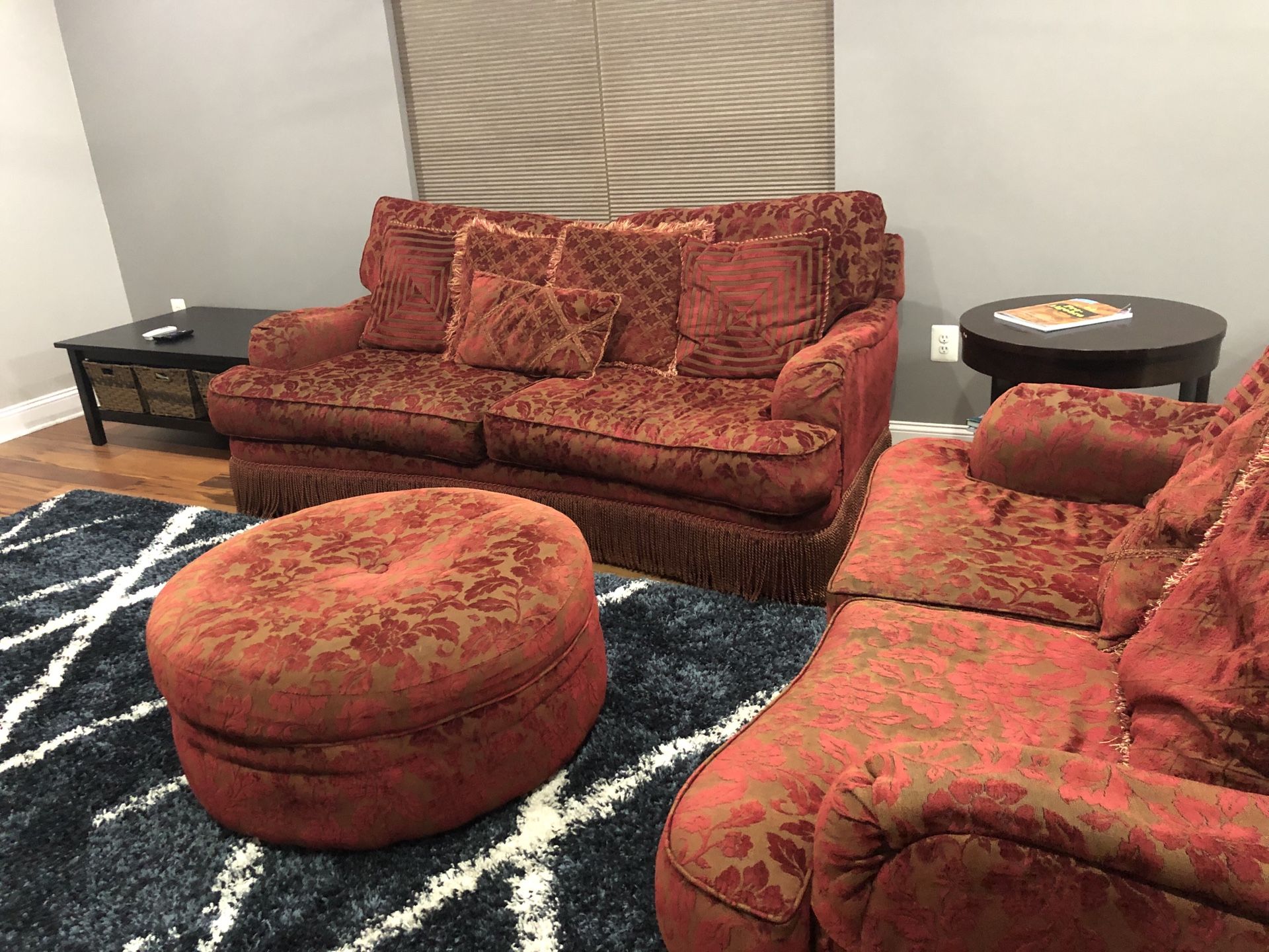 -Red and Maroon colors -Comes with 10 Matching Pillows -Perfect for YOUR family room -Like a cloud - only 3 sofa no ottoman thing in middle