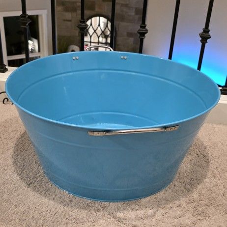 Perfect for your summer deck parties! Fill it with ice and your beverages. The color is more of a teal/turquoise - the photos look more blue. Minor scratches, nicks and very small dents from normal wear and tear - hardly noticeable. Porch pickup only.