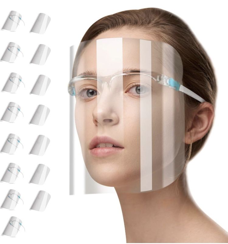 Paul Lorna Anti-Oil Splash Mask Clear Face Shields Reusable Set (15 Shields + 8 Glasses Frames) for Adult kids, Full 180° Protection. Plastic Face Shields with Glasses Ultra Clear Safety Goggle Visor