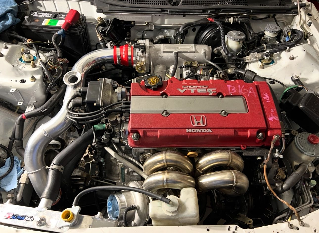 Integra turbo setup for sale no motor. Motor sold separately. It’s still in vehicle will be taken off car soon. Parting out selling car. Turbo made 330hp on crome chip less than 1000 miles on it. AC and PS capable. What included: Borg Warner EFR-7064 Turbo B2 0.83 A/R Undivided T3 (Internal WG), Cast Iron, 3" EFR V-Band Flange. 1320 Performance B SERIES AC COMPATIBLE TURBO MANIFOLD RAMHORN 3” custome down pipe, custom intercooler piping. 1000cc Bosh high impedance injector don’t need resistor box. PO6 crome chip ecu