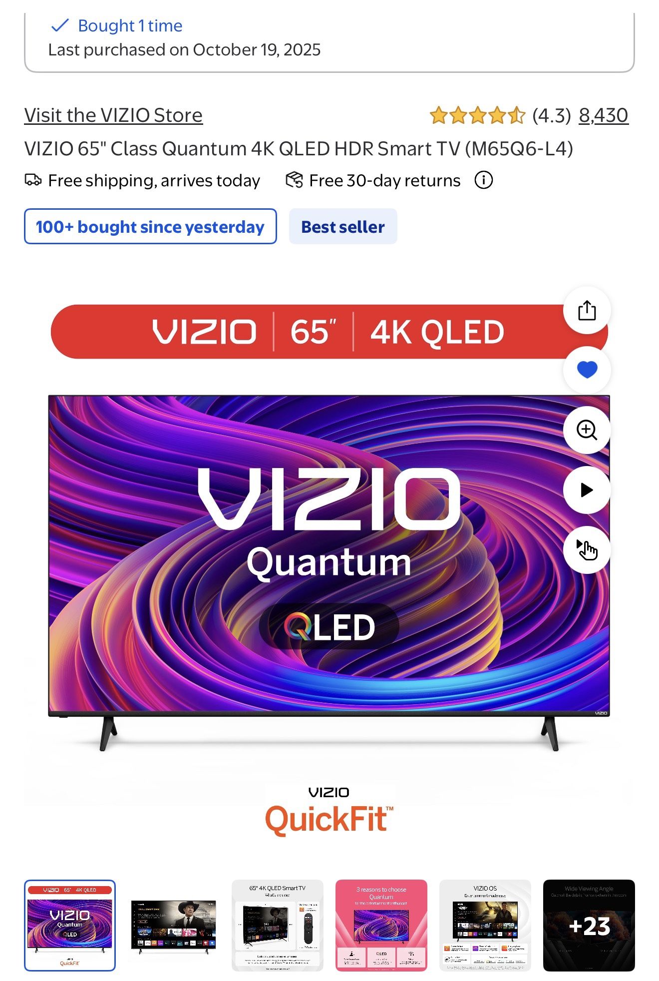 VIZIO 65" Class Quantum 4K QLED HDR Smart TV (M65Q6-L4) - $350 OBO.