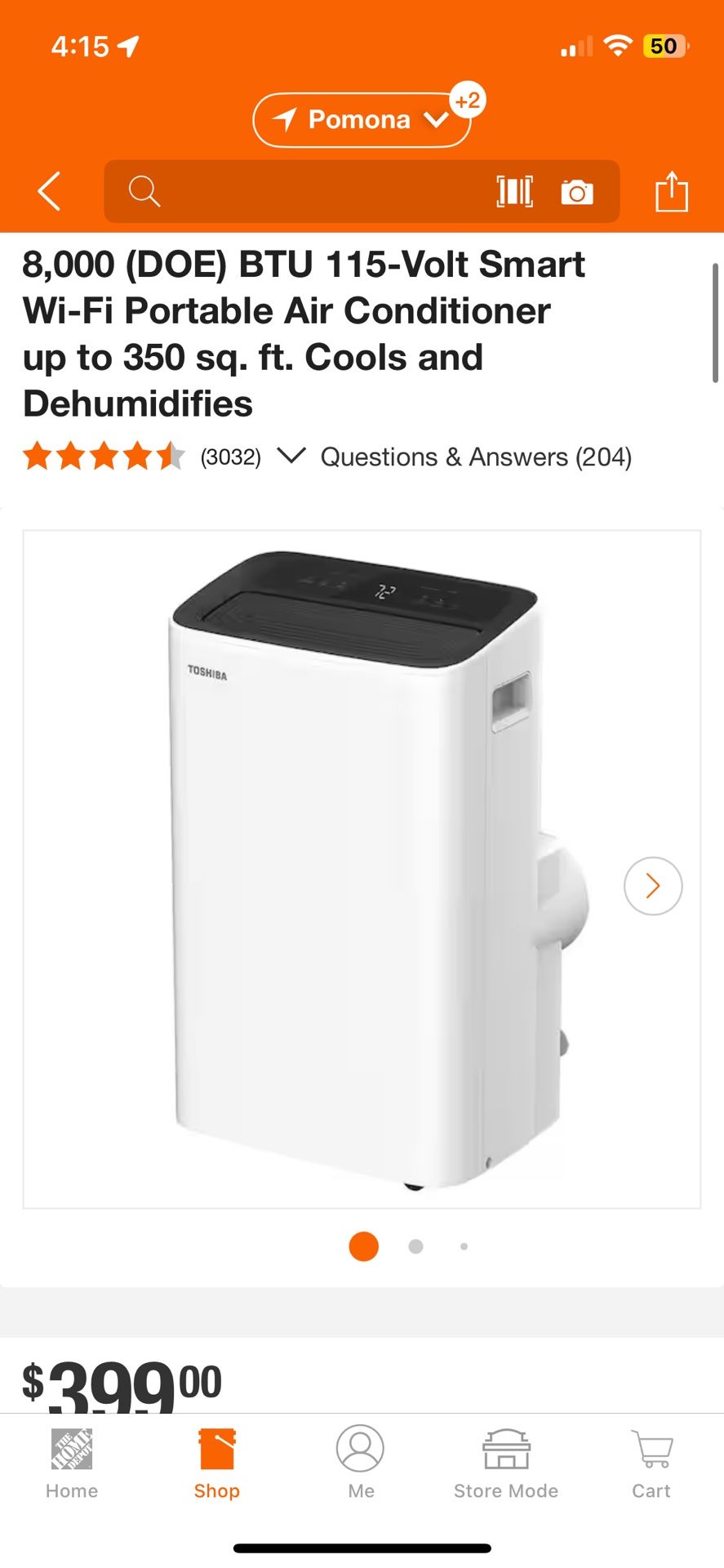 Toshiba 8,000 (DOE) BTU 115-Volt Smart Wi-Fi Portable Air Conditioner up to 350 sq. ft.
