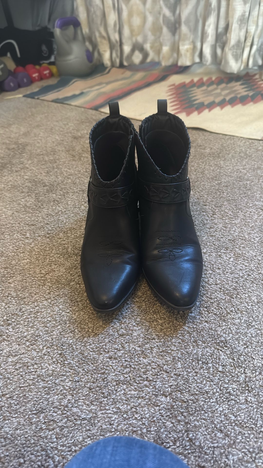 Frye and Co Black ankle booties. Cute western style Size 11 $10 firm Great condition.