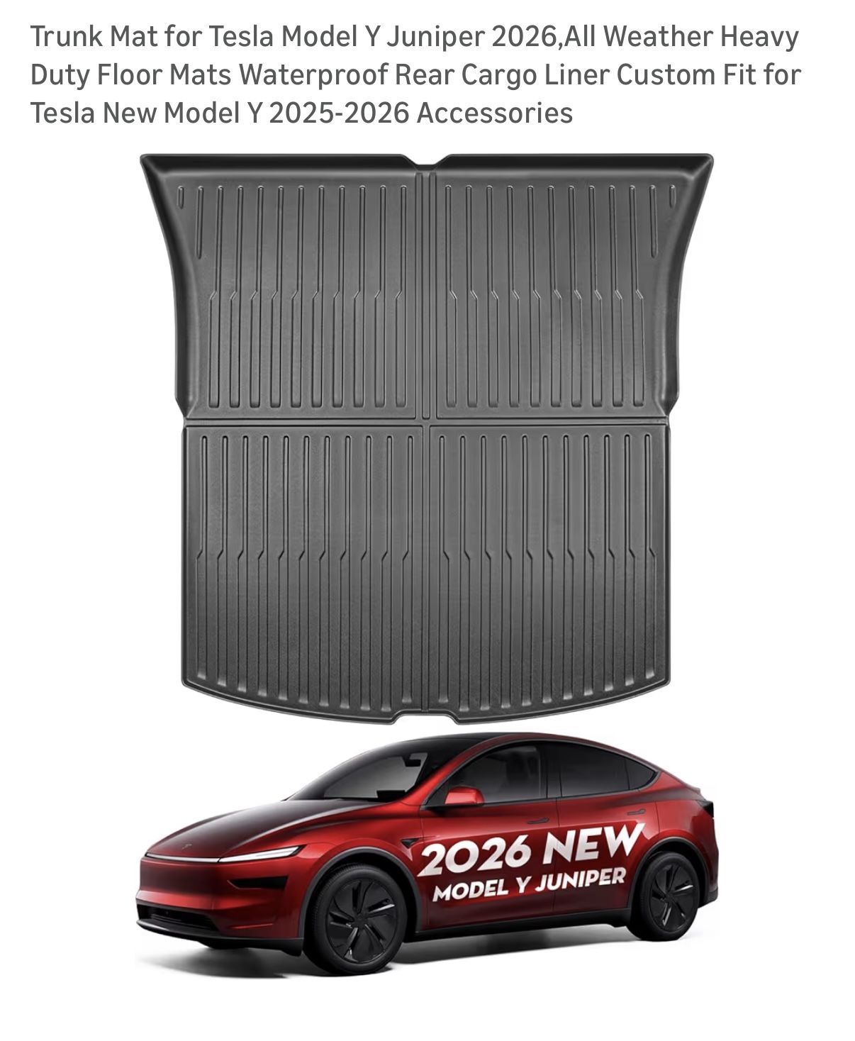 Trunk Mat for Tesla Model Y Juniper 2025-2026, All Weather Heavy Duty Floor Mats Waterproof Rear Cargo Liner Custom Fit for Tesla New Model Y 2025-2026 Accessories Product details Top highlights Custom-designed: According to the original car design, the cargo mat has been custom-cut specifically for 2025-2026 Tesla model Y Juniper. Perect fit for 2026 Model Y Standard/Premium/Performance. Non-Slip Surface: The textured, non-slip surface of the trunk mat ensures excellent grip for your cargo, preventing shifting during transit, gives extra protection to your cargo area. Easy to Clean: Model Y Juniper trunk mats are waterproof,stain resistant,durable,and easy to clean. Easily clean by simply wiping down or remove them from your car to hose them down with water.Keeps your carpet looking brand new! Eco-Friendly Material:This model Y trunk mat is made of high quality TPE (Thermoplastic Elastomer),with high strength, resilience,environmentally friendly, non-toxic and odorless. Exceptional Performance: TPE trunk mat is designed to withstand all weather conditions, providing excellent protection against rain, snow, mud and heat, rear trunk floor mats can retain its shape and shape in extreme hot and cold temperatures performance. Brand new in open bag. We are located close to Russell and Boulder hwy. / Wetlands/Sam Boyd stadium. Sorry we don’t deliver. Ty for checking our lists for more deals.