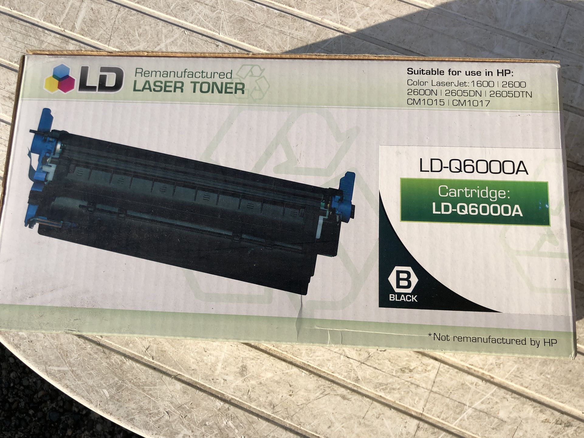 LD Q6000A Remanufactured black toner cartridge. New inbox. Works with various HP color and black LaserJet printers.