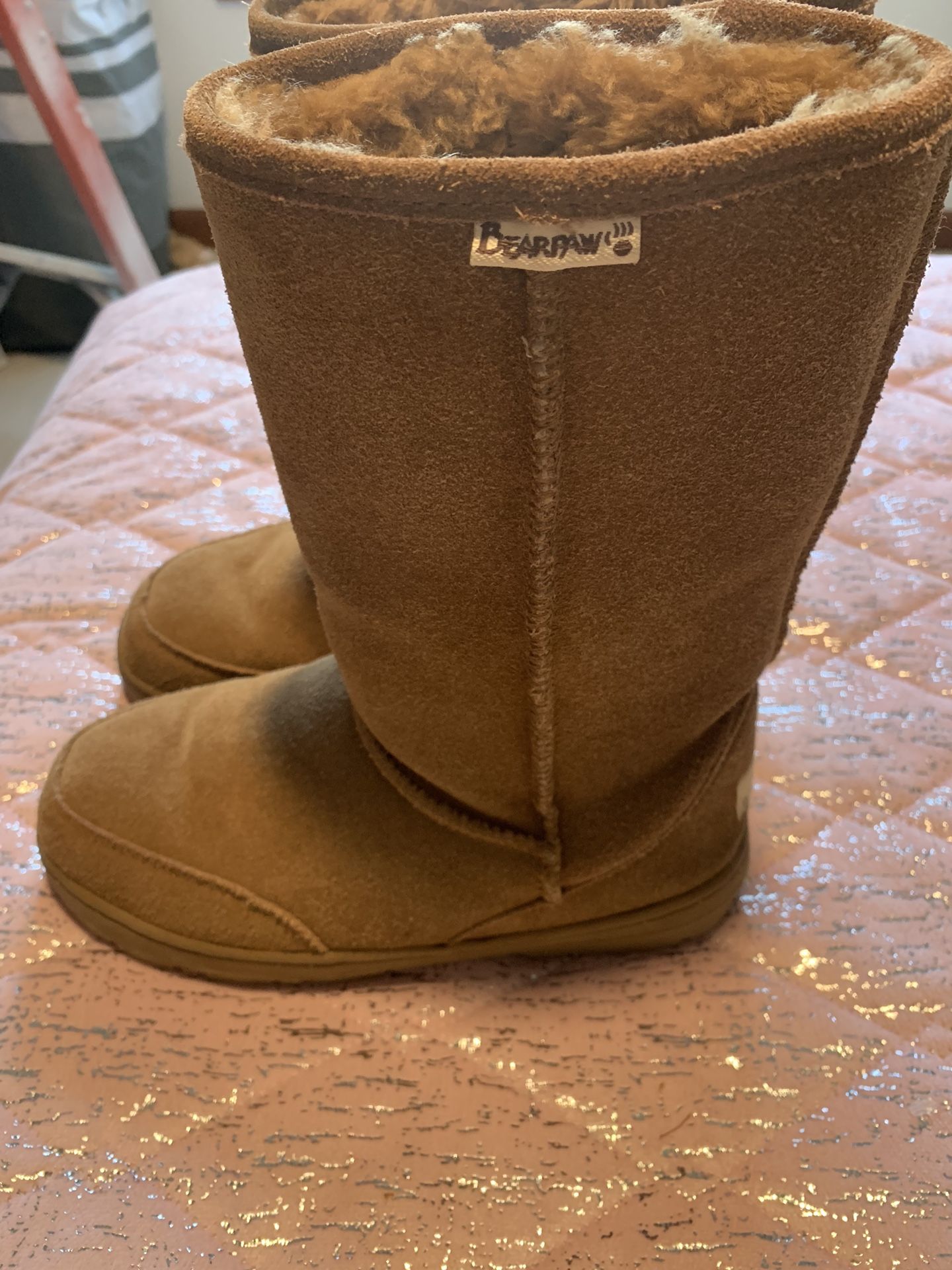 Tan Brown Womens 8 Bearpaw Suede Boots