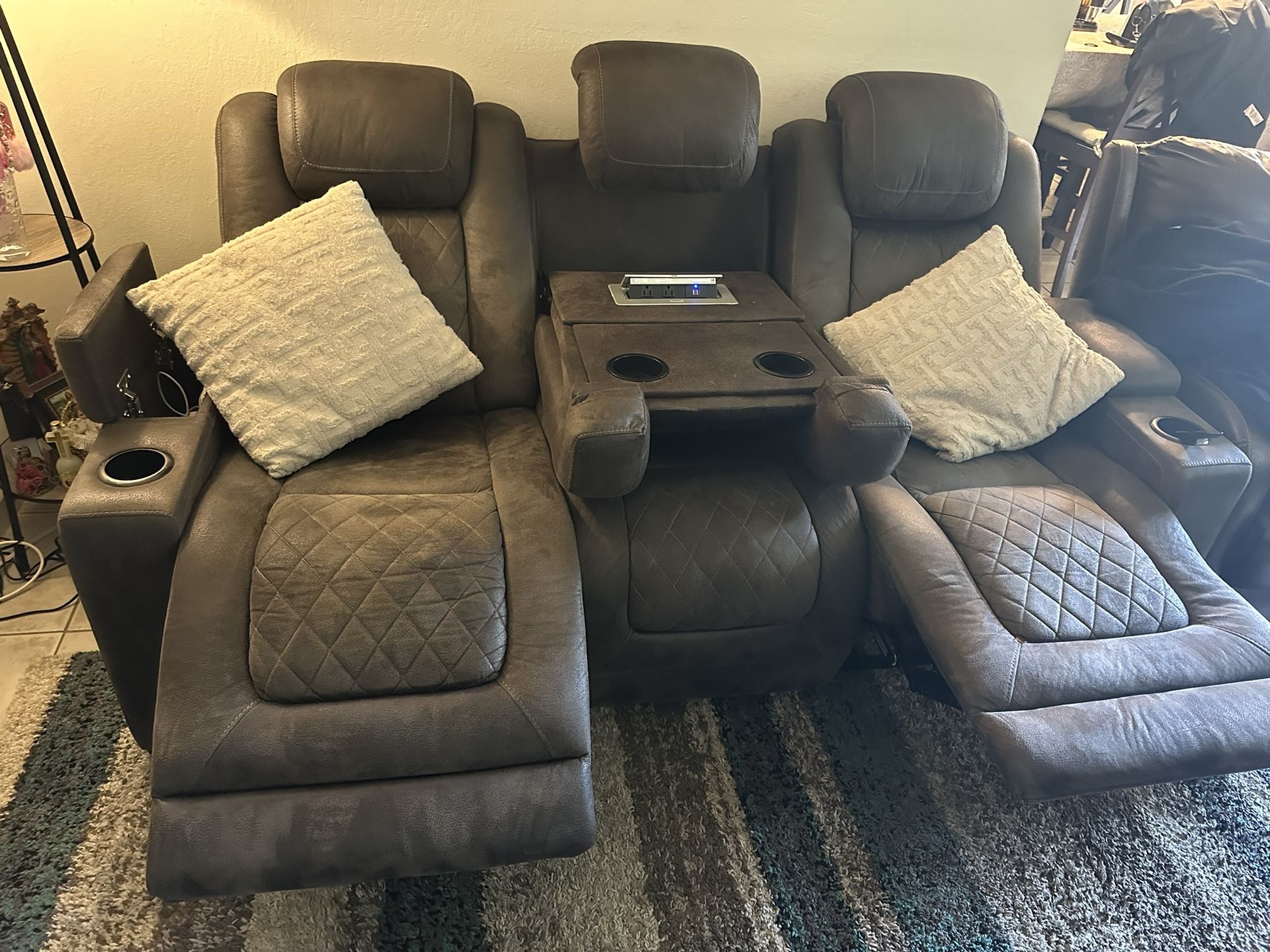 Vendo sofá reclinables en excelentes condiciones viene con dos adaptadores para cargar celulares y viene adaptador para conectar conexiones en $750 precio negociable acepto ofertas