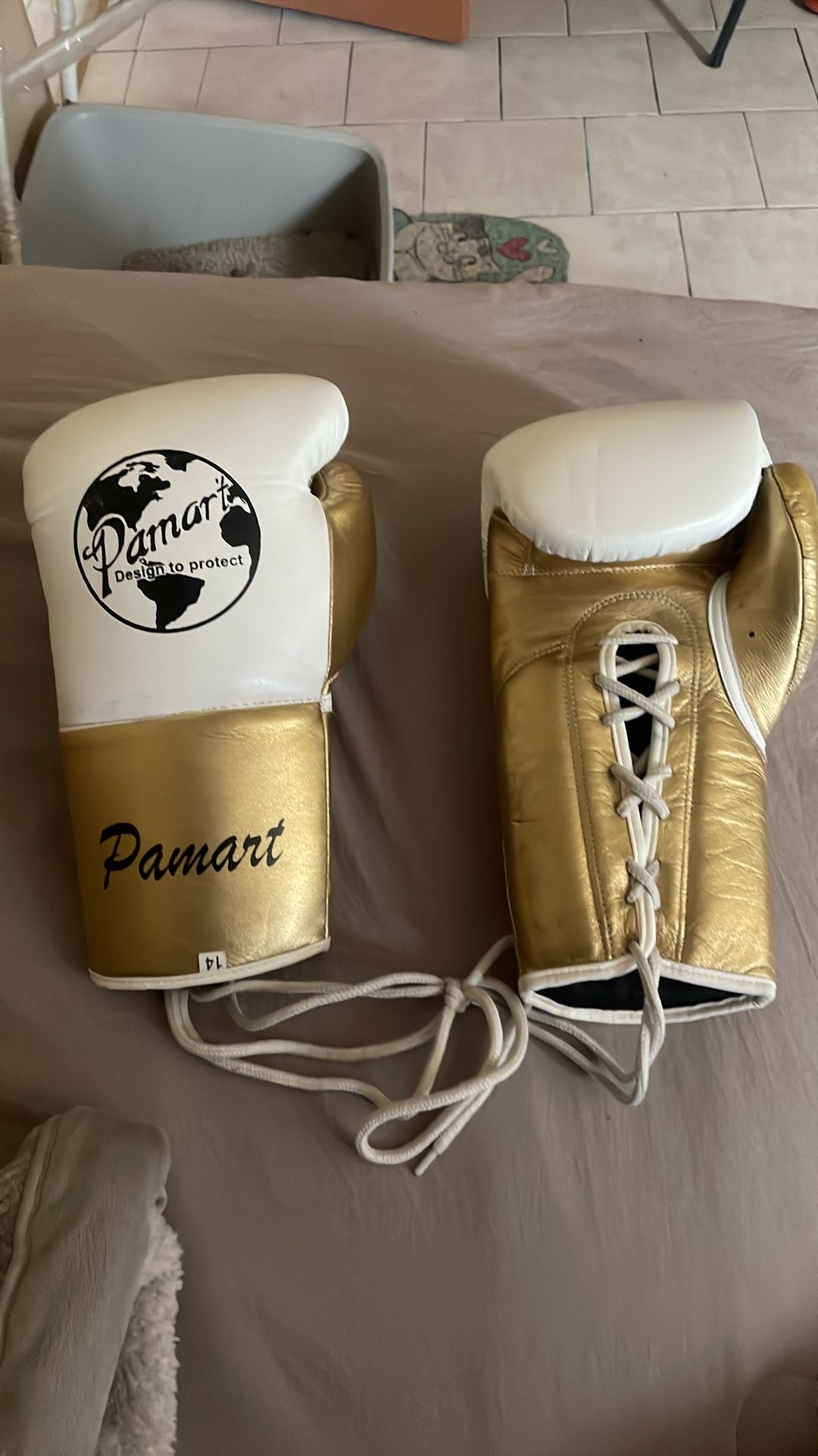 Gold white Pamart boxing gloves