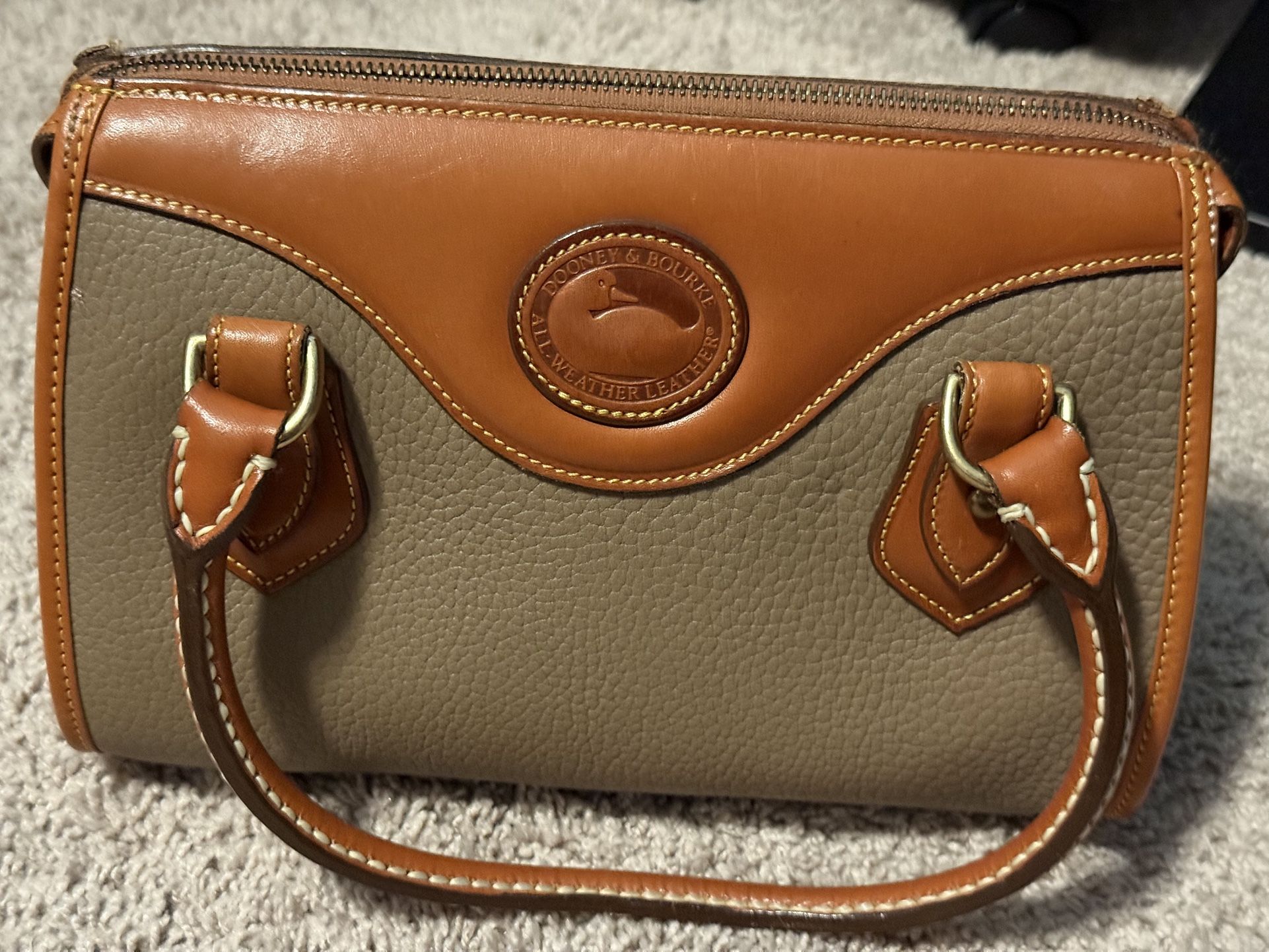 Vintage Dooney & Bourke All Weather Leather Satchel Purse Taupe & Brown