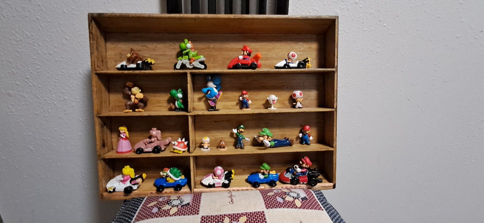 Mario bros and friends plastic figures and bamboo display