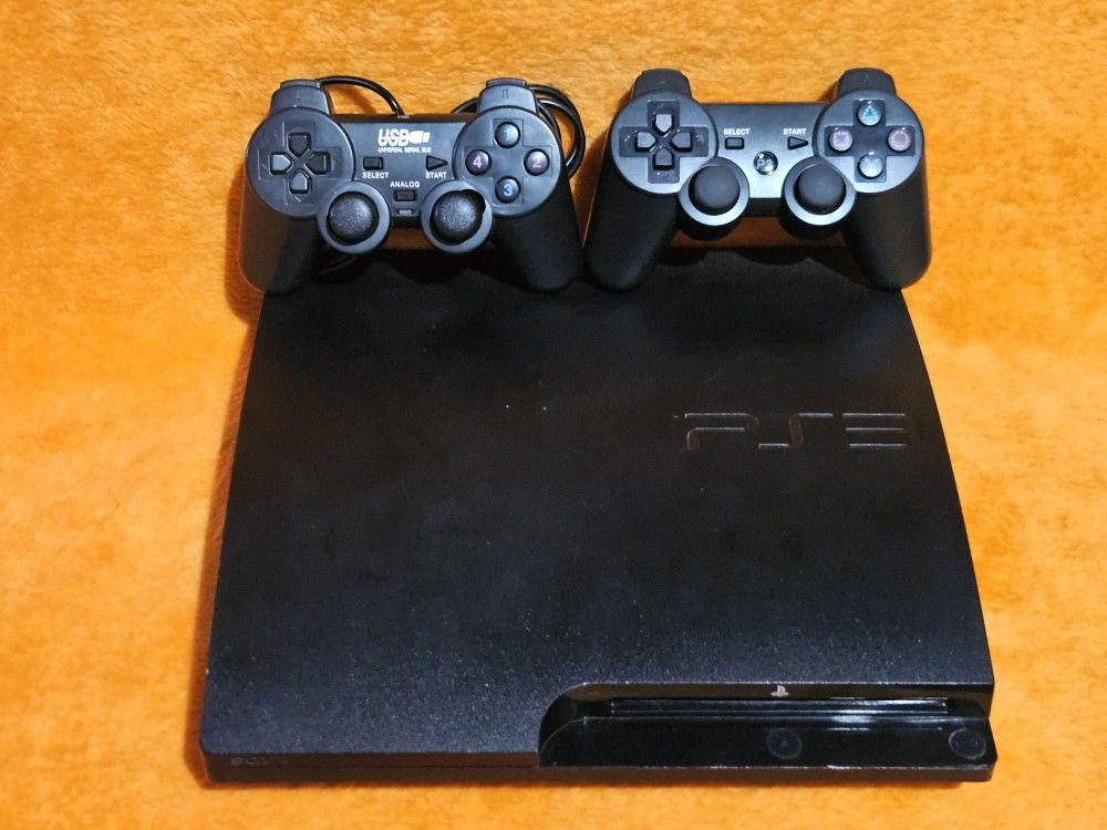 Here's a good condition PS3 console with power cord, hdmi cord, 1 wireless controller and 1 wired controller. Cleaned and tested, works great. Model #Cech-3001B, 320 GB.