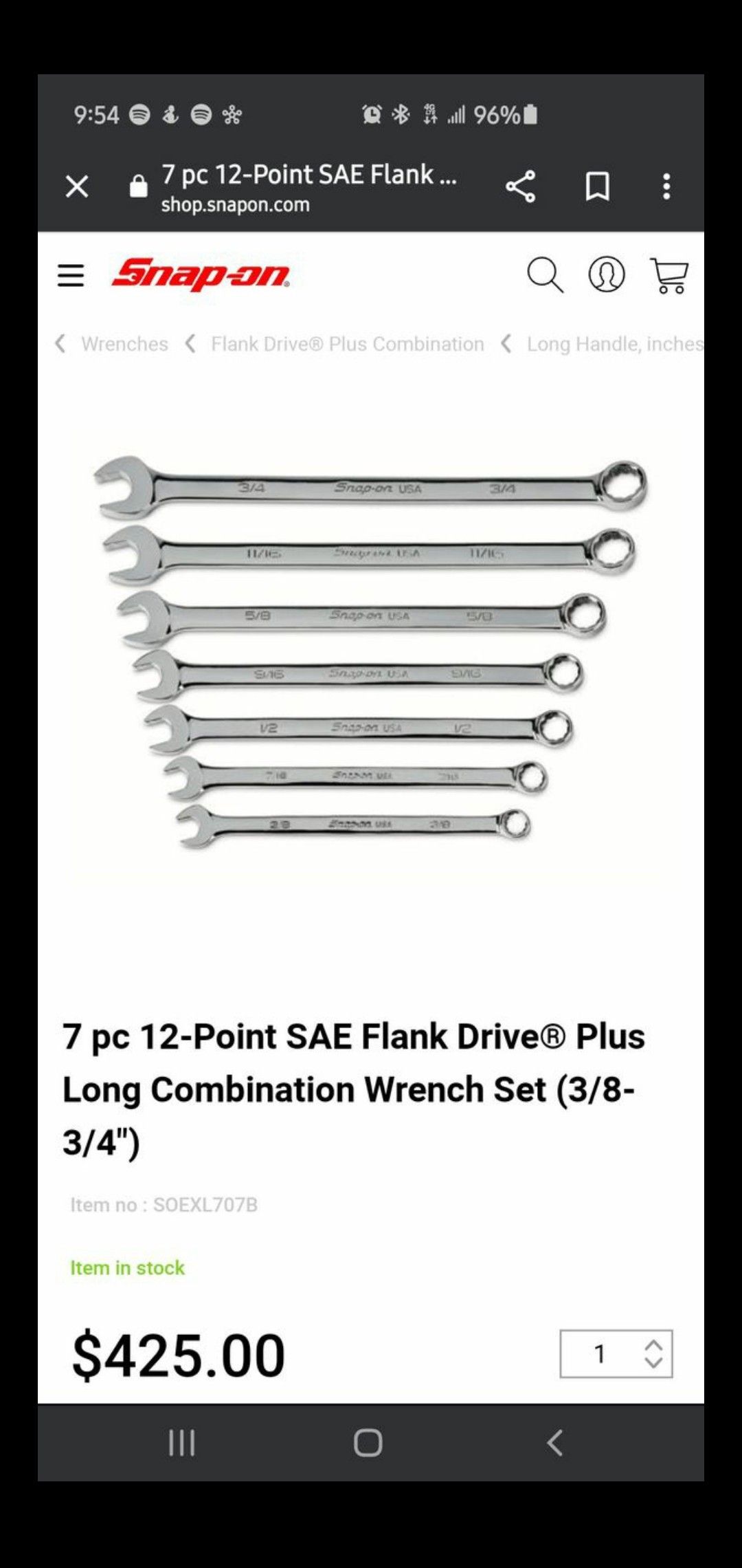 New never open 7 pc 12-Point SAE Flank Drive Plus Long Combination Wrench Set (3/8-3/4") Asking 350 or best offer