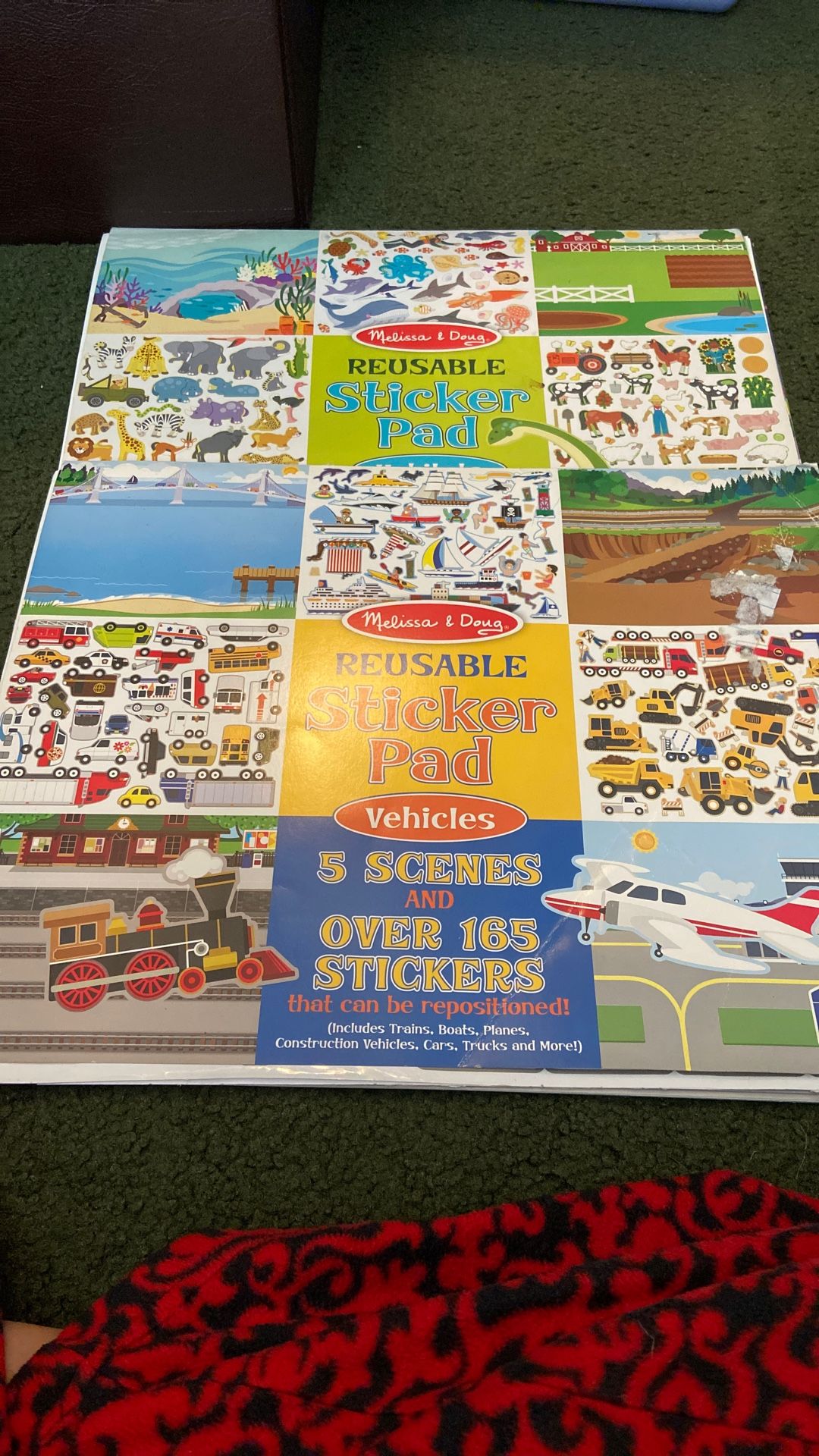 2 books with 5 scenes in each. And 5 sets of sticker sheets in each. Truck & Tranesportipn theme. Animal themed. No holes or tears