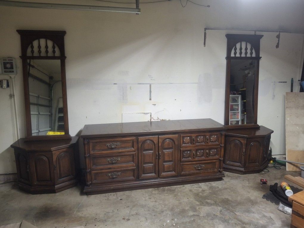 2 night stands with mirrors 30 inches wide 18 inches deep 24 inches high Mirrors are 23 wide and 55 tall Dresser 72 wide 18 deep front to back 32 high 225 or best offer
