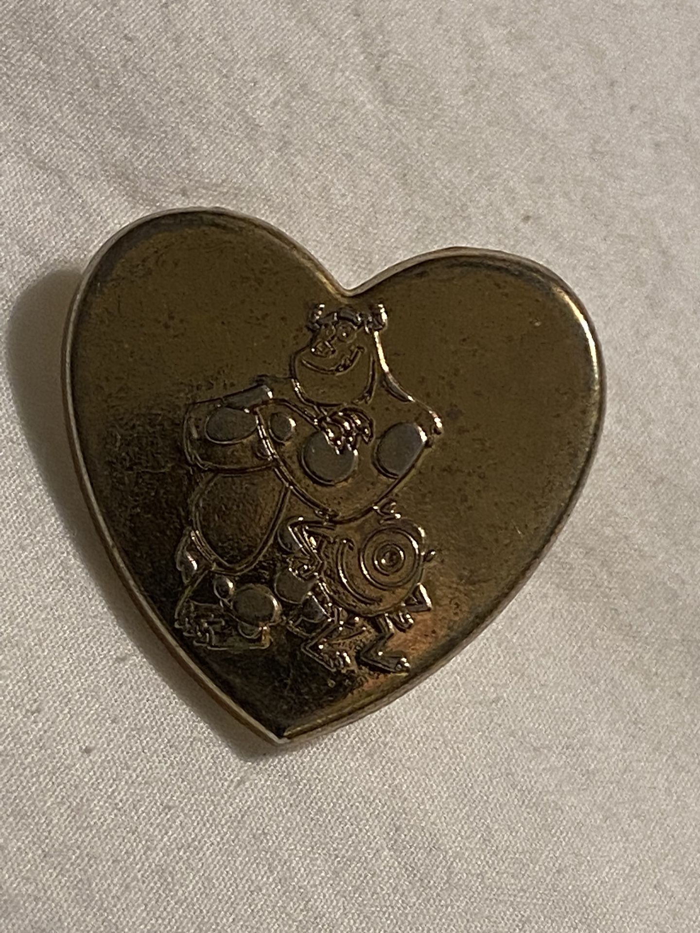 Monsters Inc Disney Pixar Sully And Mike 2012 Gold-Toned Heart Shaped Metal Hat Jacket Pin