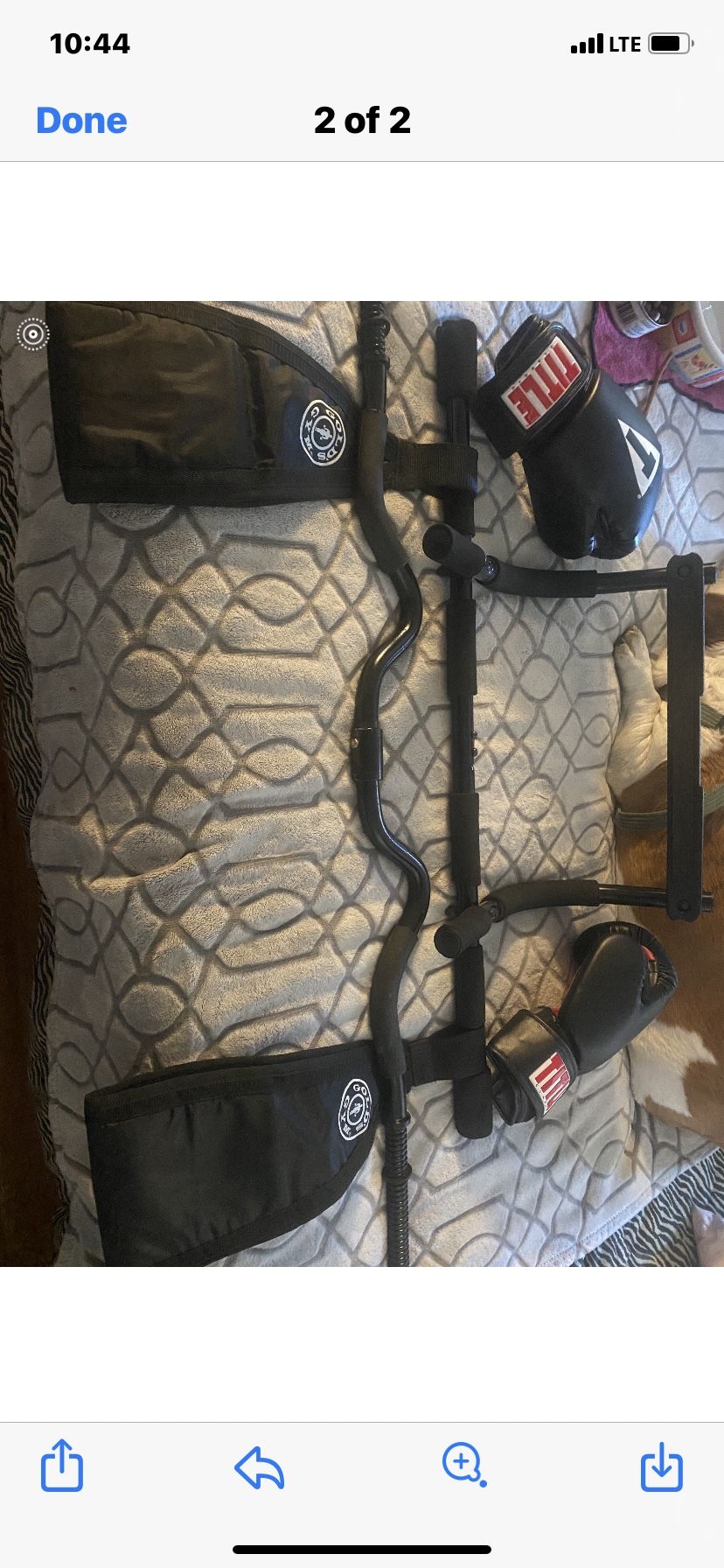 Curl Bat And Golds Gym Bar And Title Boxing Gloves