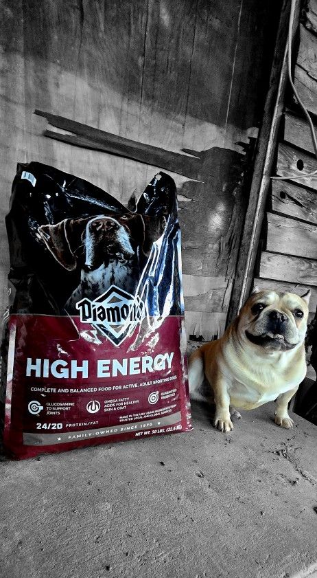 This is a 50 lb bag of Diamond Hi-Energy Sporting Dog Formula dry dog food.