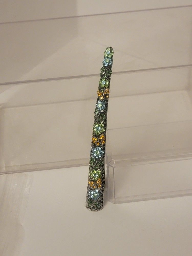Vintage 6" large hair clip, multi color rhinestone flower and butterflies, very solid piece in great color, please see pictures for best description and condition