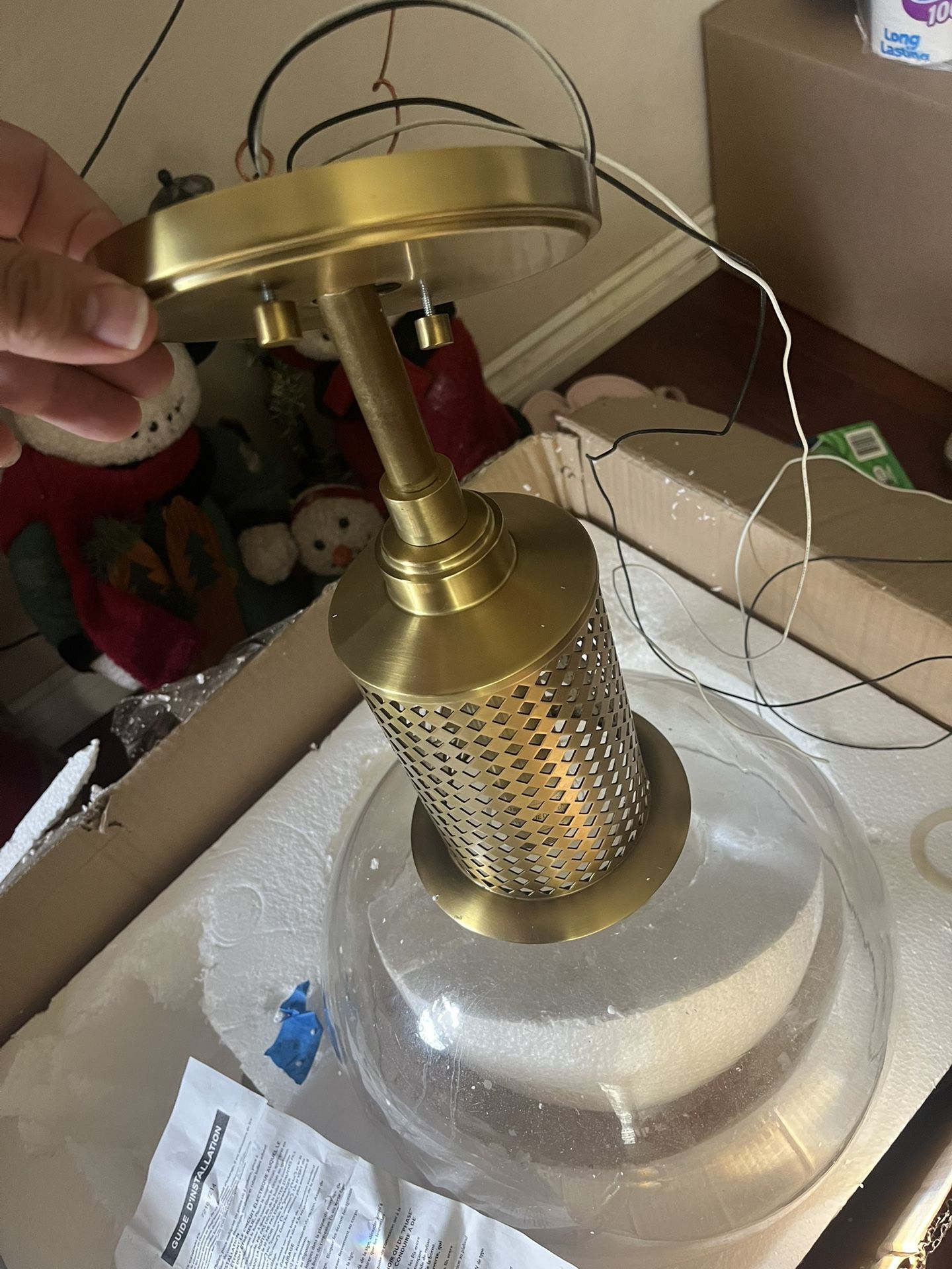 New in box comes with extra long poles and short poles glass bowl gold in color