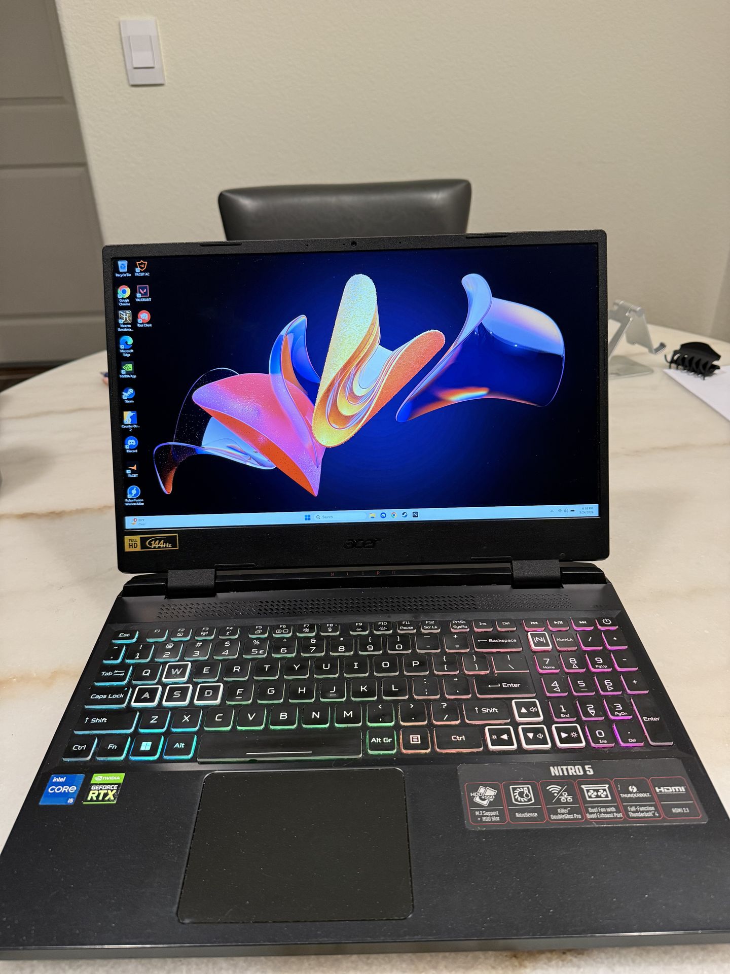 Great budget gaming laptop! Runs esport games very well. Usually used it for Valorant and CS2. Around 200fps on both games. CPU: Intel i5 12500H 12 cores 16 threads GPU: RTX 3050ti Memory: 16gb ddr4 3200mhz Storage: 1tb nvme Screen: 1080p 144hz WiFi 6