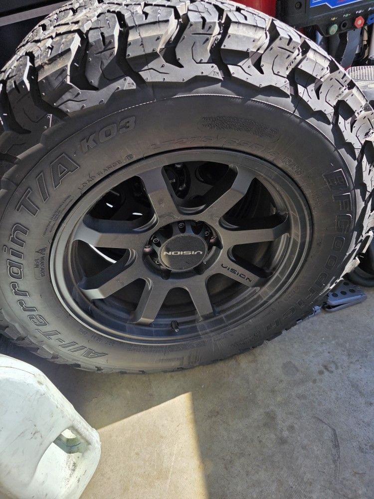 Like new, less then 300miles on wheels and tires. Bought brand new with TPMS on it still.. its for my 2025 Toyota Tacoma. Bought everything new for $2600. Reason for sale , upgrade to Toyota Tundra .My loss your gain. Warranty will carry over to new owner.