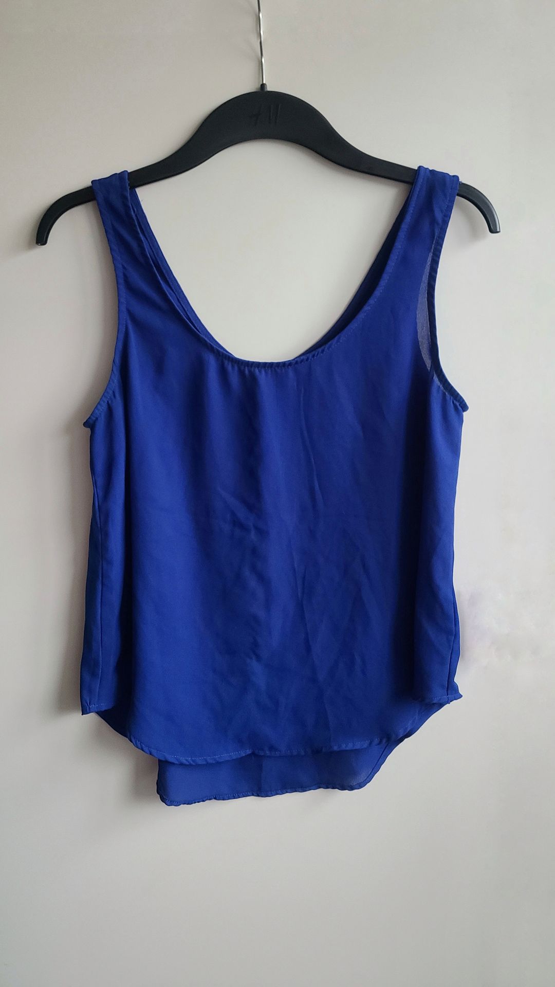 Thin summer top. Color dark blue. Size S/M Shorten in the front & longer in the back.