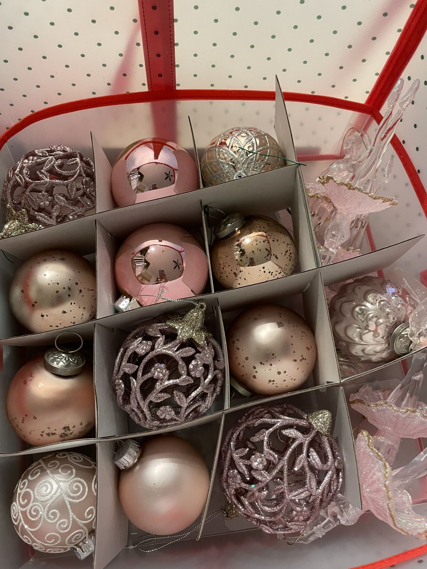 Beautiful pink and rose gold ornaments selling as a set