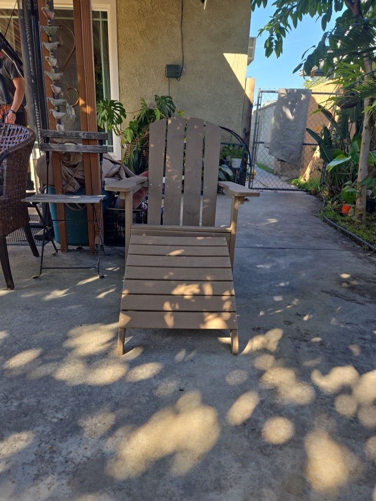 Weather proof heavy duty solid Adirondack chair. Needs some cleaning, had it for 2 yrs. Never really used it. Only been outside. Purchased at Armstrong Gardens