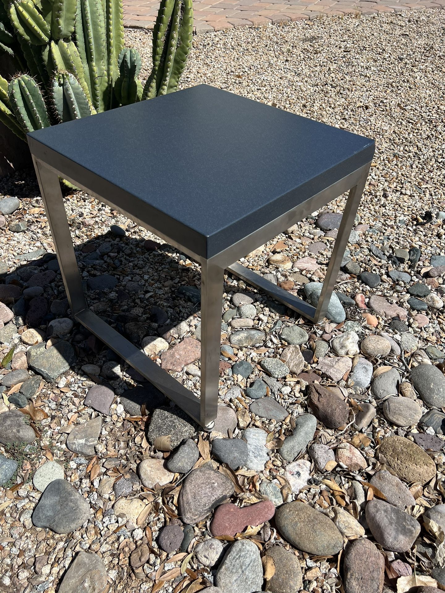 Offer a modern metal and stone end table 18.5” high and 18”in length and 18” In width. See pictures for details. Cross streets are crismon and baseline. $40