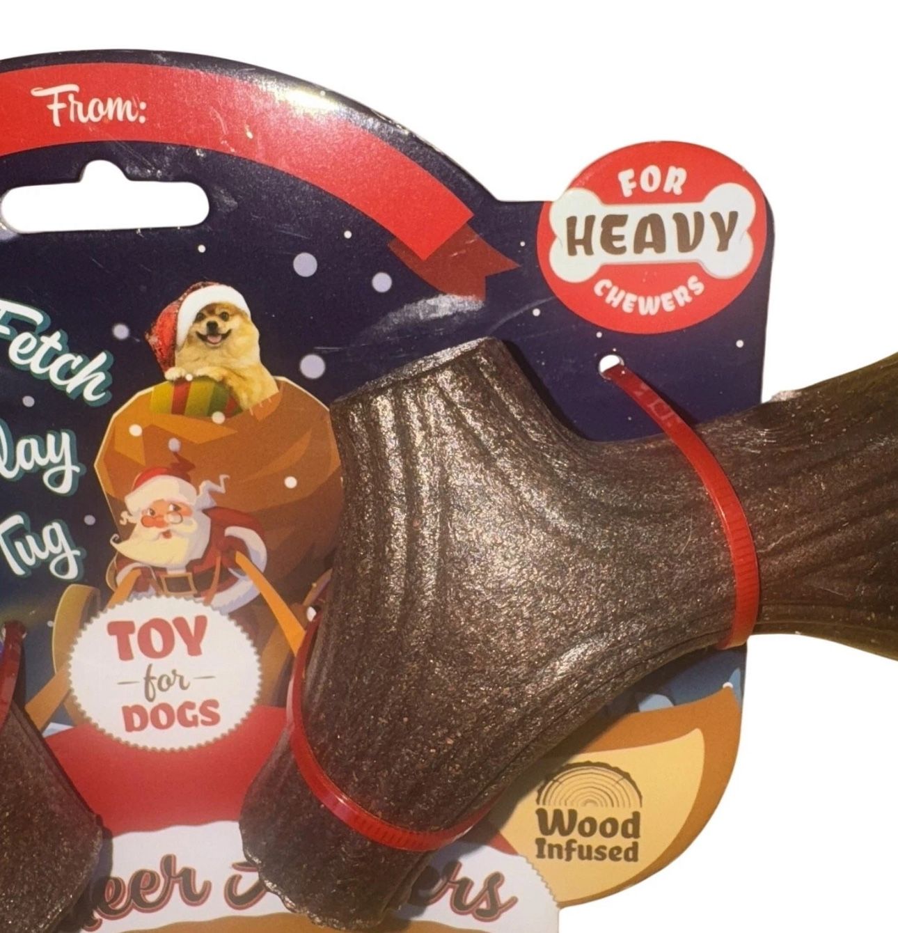 DOG CHEW TOY REINDEER ANTLERS 2PC SET WOOD INFUSED MINT SCENT HEAVY CHEWERS