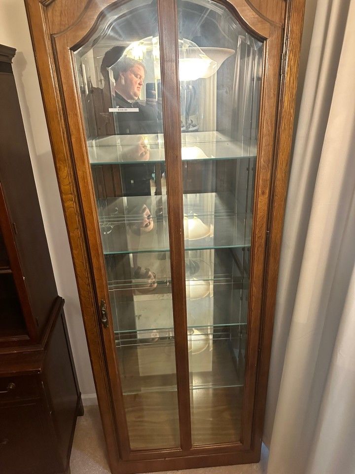 Nice Looking Older Glass Curio Cabinet Great Condition With Light On Top