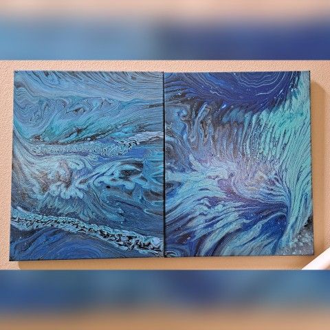 Porch pickup only. A set of two 16x20" backstapled canvas. An original acrylic artwork sealed with a glossy cover.