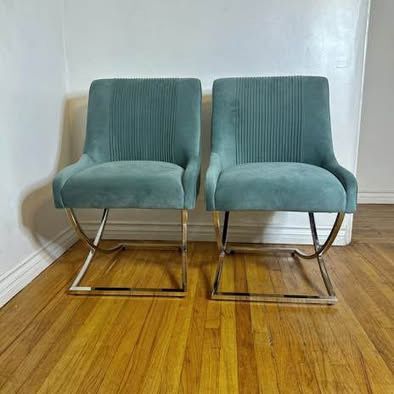 New Two are still In Box. Sells online for $587. Our price $340. Assembly Required Depth 20.2” - Height 32.6 - Width 23.2” Seat Height 19.2” Seat Width & Depth 16.5” Weight 37.5 lbs Weight Capacity 250lbs Luxurious Velvet Fabric: Each chair is upholstered in soft, high-quality velvet, adding a touch of elegance to your space. Sturdy Metal Legs: The durable metal legs provide a modern touch and ensure stability and longevity. Pleated Backrest Design: The unique pleated design of the backrest enhances breathability while offering a stylish look. Integrated Handle: A convenient handle on the back of each chair makes it easy to move and rearrange as needed. Versatile Pairing: This set of two chairs is perfect for various settings, from cozy living rooms to chic dining areas, enhancing any decor style.SQ733GR House