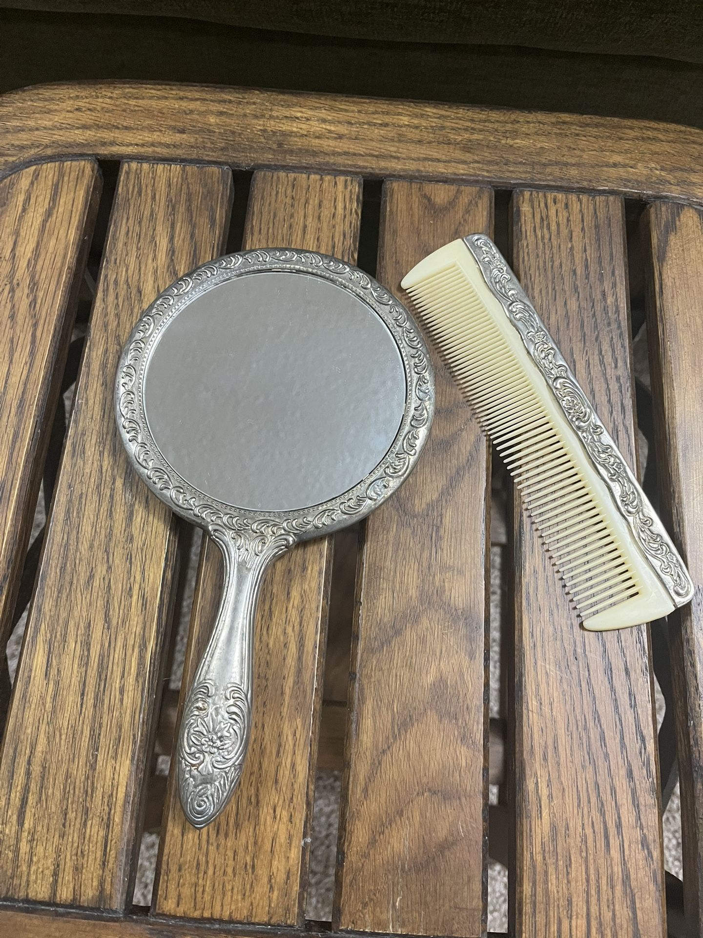 Collectors Vintage Silver plated Hand Mirror & Comb In Great Condition