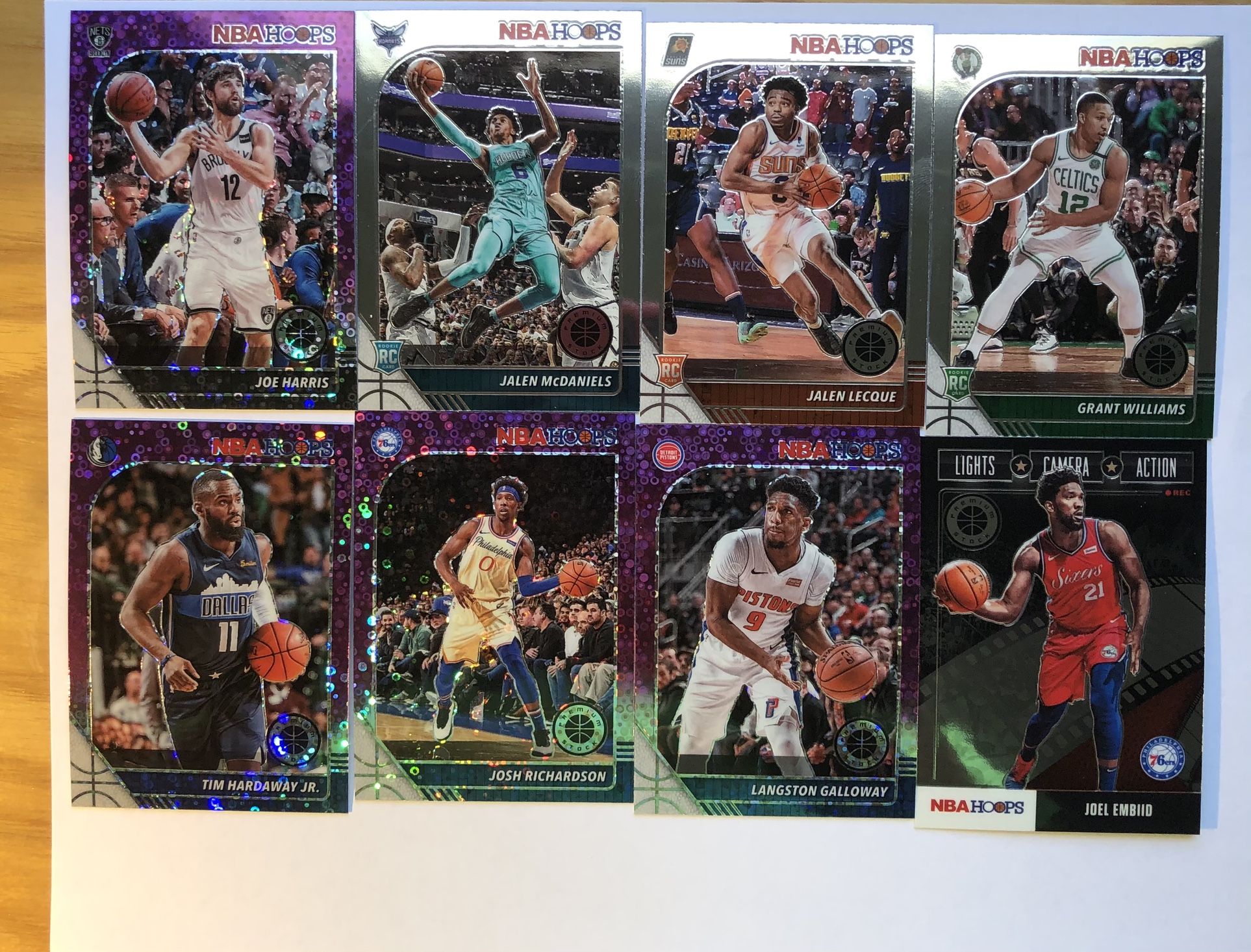 NBA Hoops Premium stock card lot has disco hanger only and rookies Tags will not get Panini Trading Cards Chronicles Prizm Illusions Rookie Top Loaders Zion Williamson Ja Morant RJ Barrett Rui Hachimura Coby White Tyler Herro Kendrick Nunn Kevin Porter Jr Eric Paschall LeBron James Anthony Davis Kawhi Leonard Paul George Luka Doncic James Harden Russell Westbrook Jamal Murray Steph Curry Klay Thompson Giannis Antetokounmpo Devin Booker Brandon Ingram Kyle Lowry Pascal Siakam Jimmy Butler Kevin Durant Kyrie Irving Jayson Tatum Kemba Walker Ben Simmons Joel Embid Kobe Bryant Michael Jordan Shaq Los Angeles Lakers Los Angeles Clippers Houston Rockets Denver Nuggets Milwaukee Bucks Boston Celtics Atlanta Hawks Cleveland Cavaliers Indiana Pacers Dallas Mavericks Miami Heat TRaptors Orlando Magic Minnesota Timberwolves Trailblazers Philadelphia 76ers Pelicans Grizzlies Knicks Nets Bulls Hornets Pistons Okc