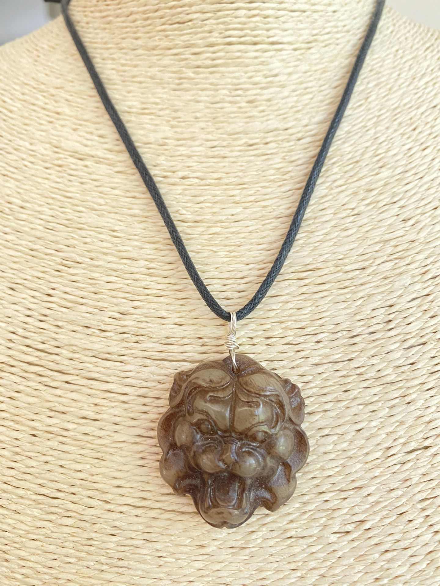 High-quality old natural jade. Hand-carved lion head pendant necklace. It is a sign of strength and courage. Black silk thread can adjust the size unisex necklaces