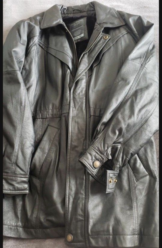 Mens long Leather Jacket Size medium Brand- Sergio Vadducci Black with zipper hood $200.00