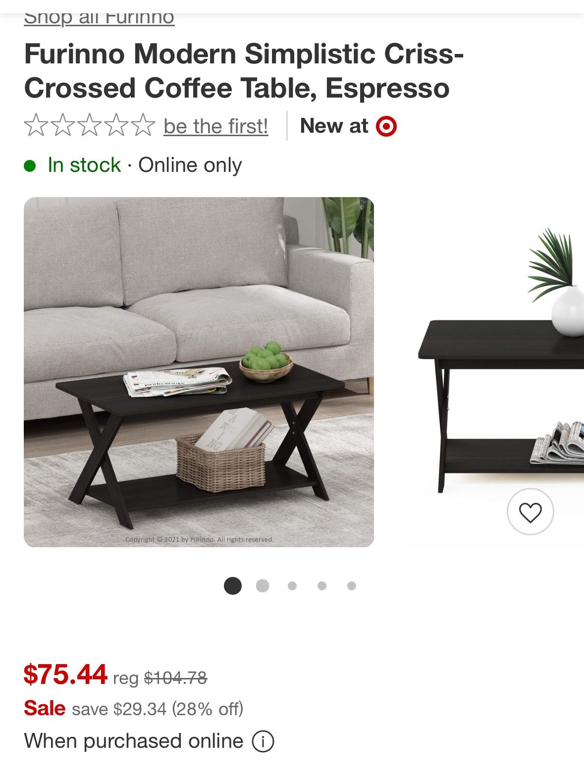 Furinno Modern Simplistic Criss-Crossed Coffee Table, Espresso (NEW)