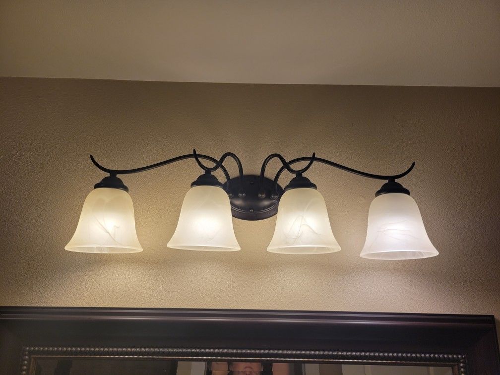 ORB bathroom vanity lights in excellent shape. No chips or cracks. Easy to install.