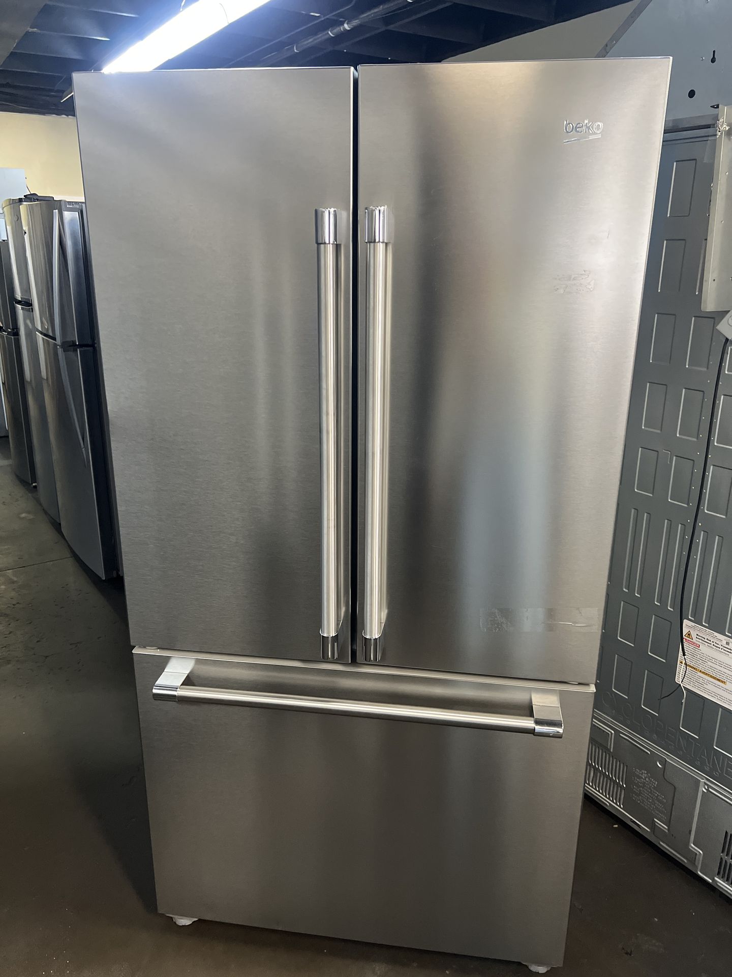 NEW OPEN BOX BEKO COUNTER DEPTH FRENCH STYLE STAINLESS STEEL REFRIGERATOR