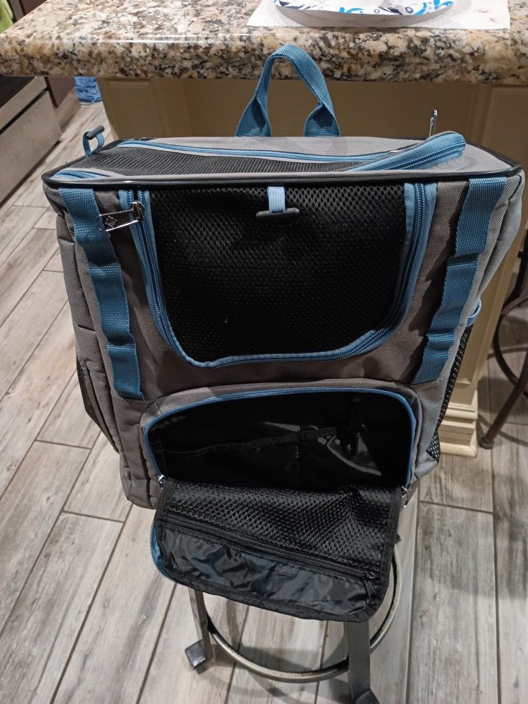 Grey and light blue pet carrier for cats, dogs, bearded dragons, and other pets. Price negotiable. Located in Chandler, Arizona.