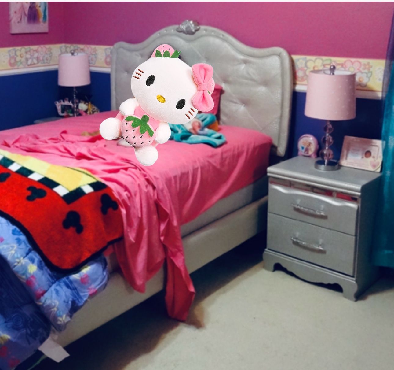 Bed frame Dresser with mirror 2 nightstands Mattress and decor not included.